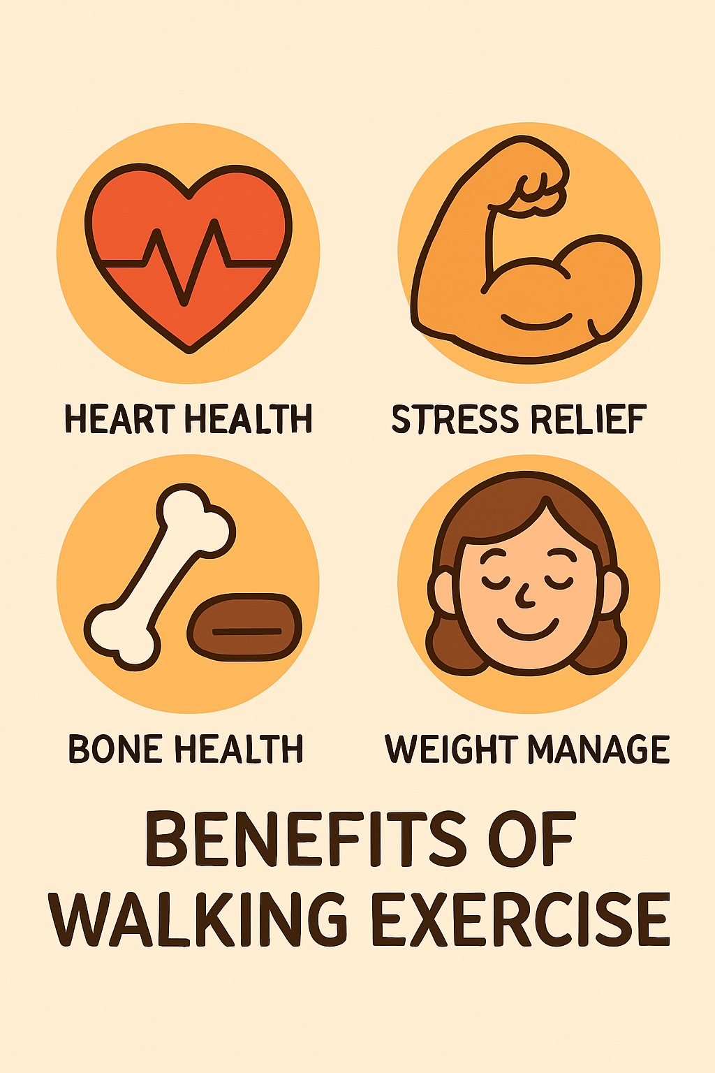 - 규칙적인 걷기 운동은 심폐 기능을 강화하고, 혈압과 콜레스테롤 수치를 개선합니다.